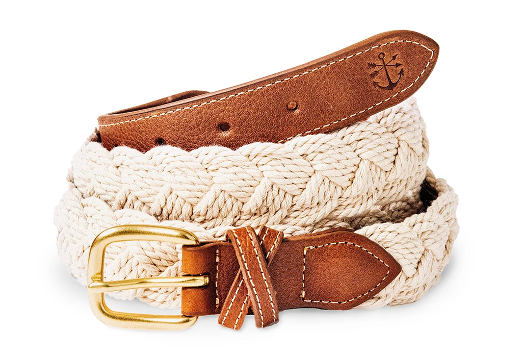 Our hand-braided sailing belt is crafted using the highest quality vegetable tanned leather and twisted nautical cord.