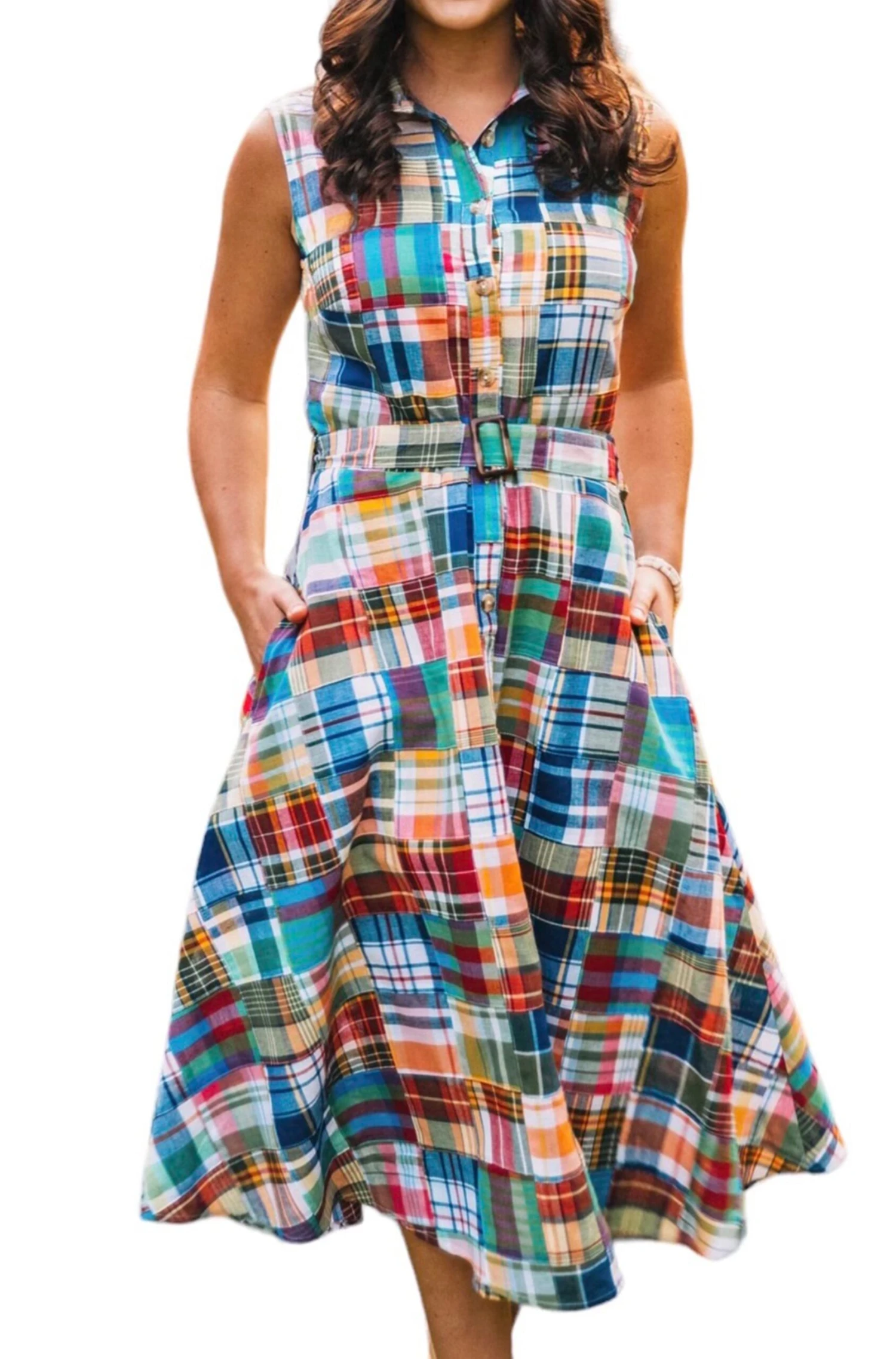 Our madras print shirtdress is a classic New England summer wardrobe staple. This versatile 100% cotton dress is adorned with roomy, but subtle side pockets for an effortless everyday look.
