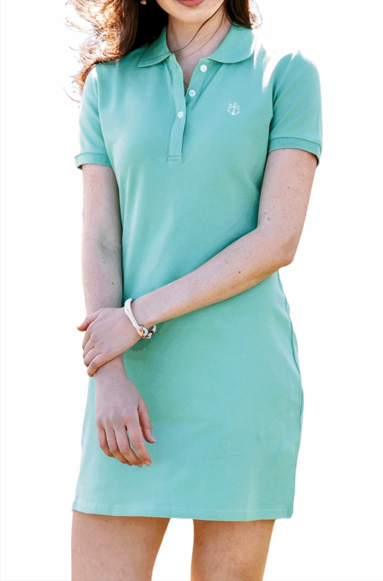 Our polo dress with a signature KJP anchor is a classic wardrobe staple. Made from buttery soft light-weight cotton pique with just the right amount of stretch. Wear it alone or with a sweater casually tied around the waist or over the shoulders.