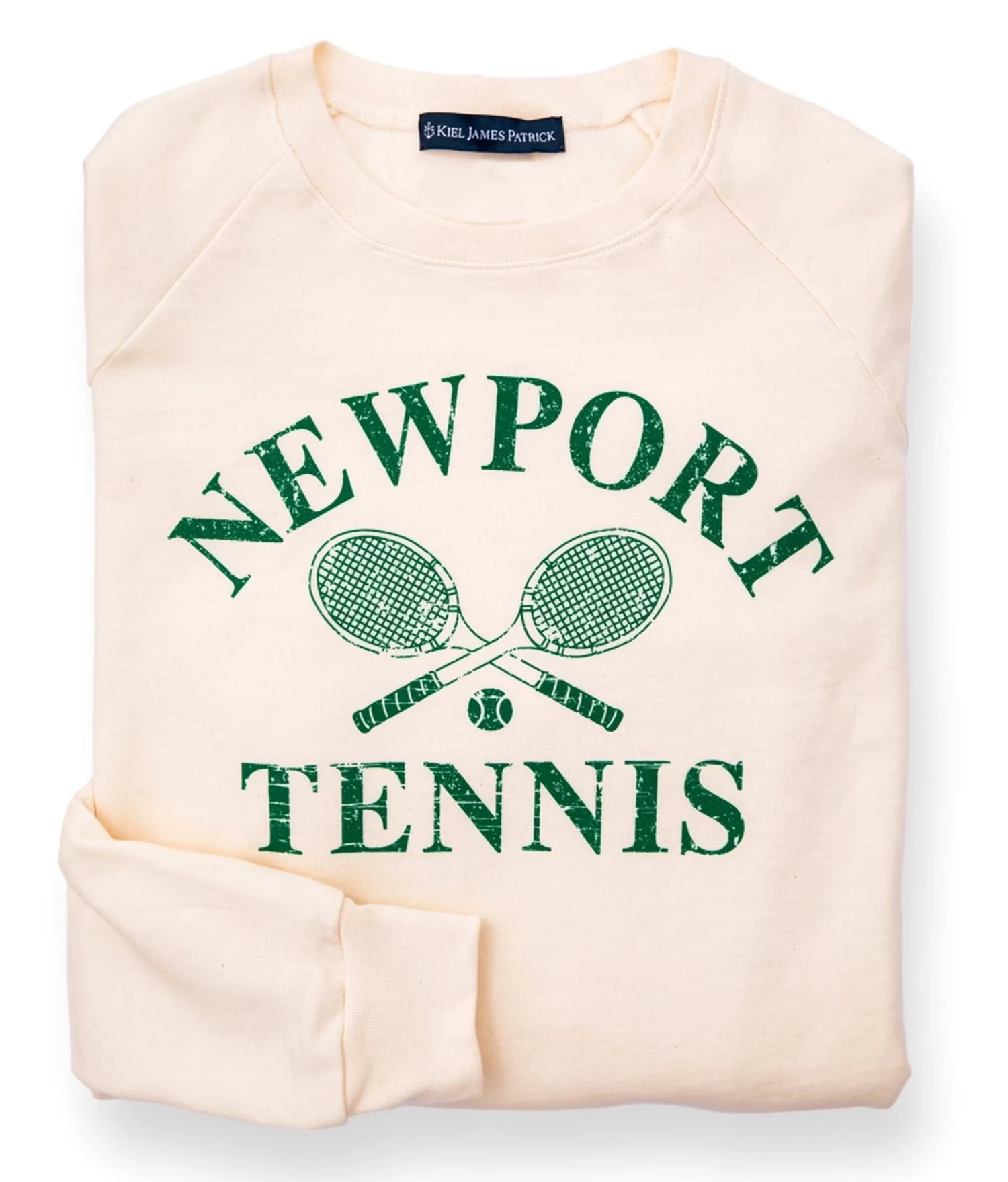 Our new sweatshirt brings a little flavor of Newport Tennis life to your summer outings. Designed in the shadows of the Tennis Hall of Fame, these American made sweatshirts have a distressed font and vintage racquet motif. Crafted from a super soft organic cotton for comfortable all season wearing.